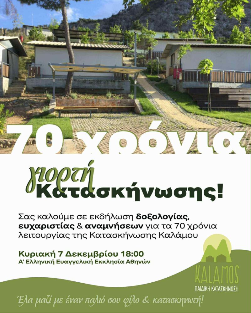 Σας καλούμε να γιορτάσουμε μαζί τα 70 χρόνια της Κατασκήνωσης Κάλαμου!